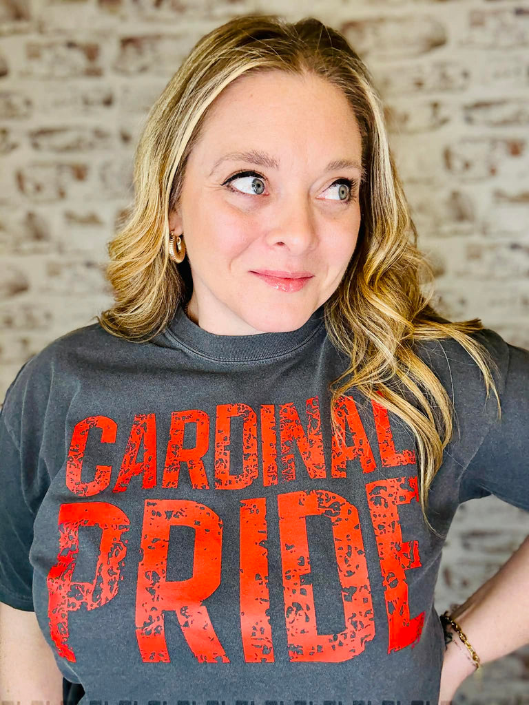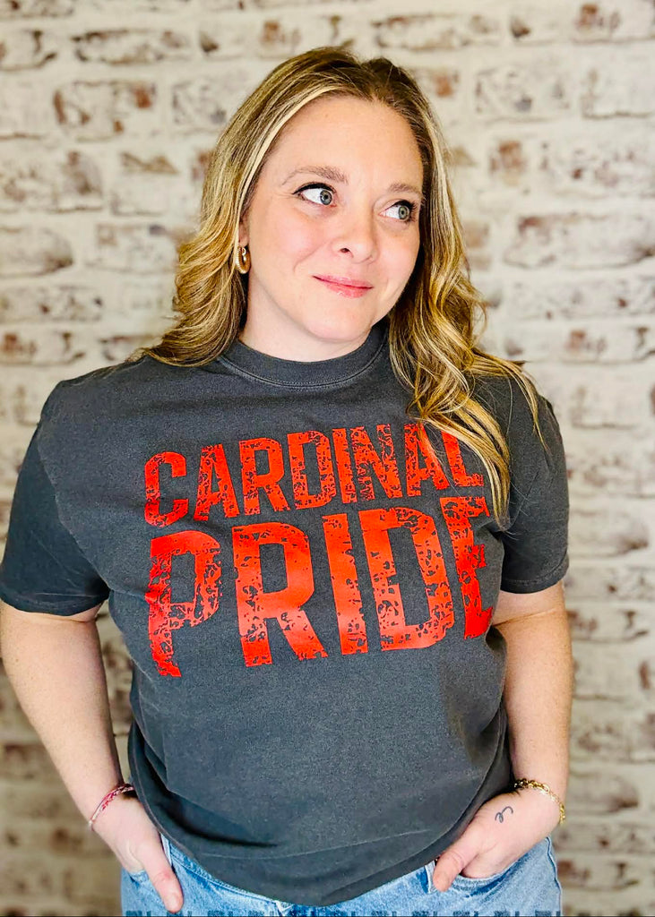 Show off your school spirit with this Grungy Team Pride Custom Spirit Tee! With its comfortable fit and stylish design, this tee is perfect for showing off your love for cardinals (both the bird and the team). Available in dark gray with a bold red graphic print, it's a versatile addition to any wardrobe. And with its unisex sizing, you can easily find the perfect fit. Get your cardinal pride on and stand out from the crowd with this one-of-a-kind tee!